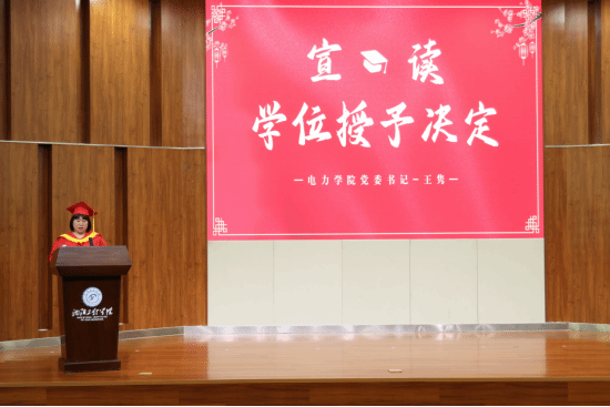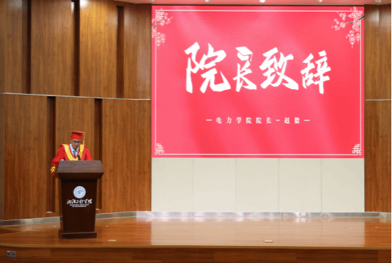 伴随着昂扬的校歌,授位仪式正式开始,电力学院党委书记王隽宣读了《关于授予江畅航等645名毕业生工学学士学位决定》,院长赵毅作题为“拥抱大时代,挺进向未来”的毕业致辞。